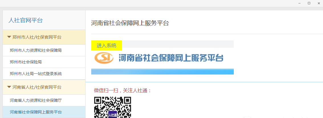 2.进入河南省社会保障网上服务平台 系统